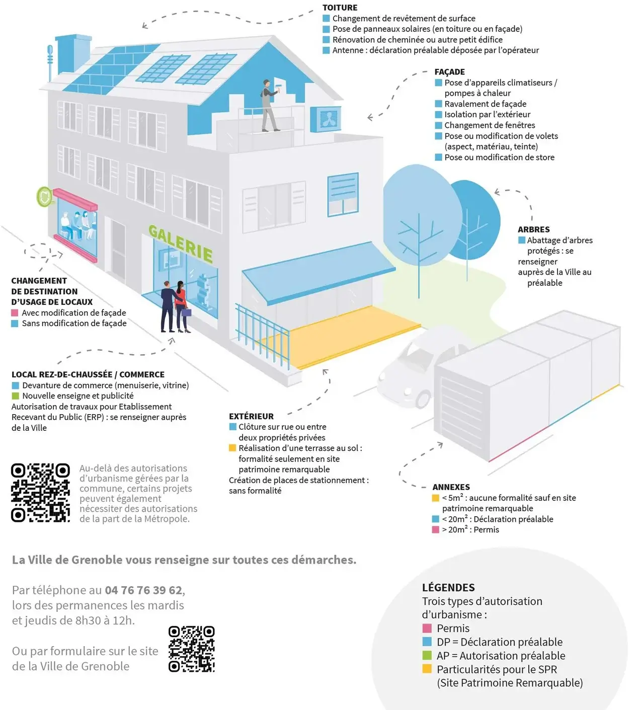 La Ville de Grenoble vous renseigne sur toutes ces démarches. Par téléphone au 04 76 76 39 62 lors des permanences les mardis et jeudis de 8h30 à 12h. Ou par formulaire sur le site de la Ville de Grenoble.