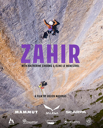 Quand Katherine Choong propose à son amie Eline Le Menestrel de gravir la grande voie «Zahir», un classique des Alpes suisses et la voie la plus difficile des Wendenstöcke, cette dernière accepte à une condition : se déplacer uniquement en mobilité douce. Au fil des jours dans la paroi, elles se rendent compte que le projet est ambitieux. L’engagement de la voie, les petites prises et la fatigue du vélo leur donnent du fil à retordre. Malgré leur motivation et leur enthousiasme, Éline et Katherine trouveront-elles leur Zahir ?