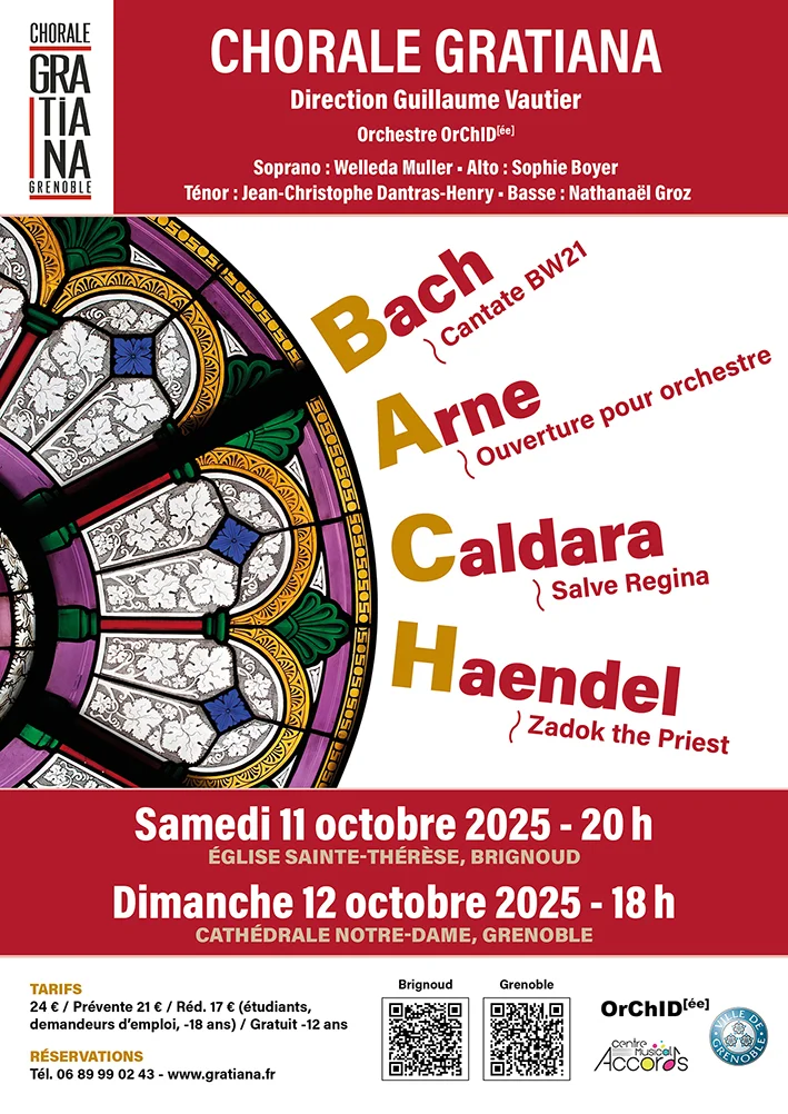- La Chorale GRATIANA sera accompagnée par l’Orchestre OrChId[ée], Orchestre de Chambre Isère-Dauphiné et les grands amateurs du Centre Musical Accords – direction Guillaume VAUTIER.