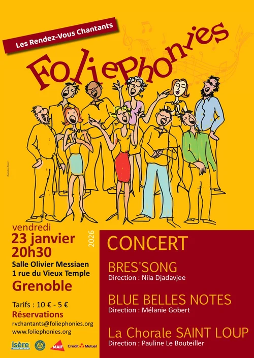 Trois chorales : Bres'song (Direction Nila Djadavjee), les Blue Belles Notes (Direction Mélanie Gobert), la Chorale Saint-Loup (Direction Pauline Bouteiller) présentent chacune un programme de 20 ou 25 minutes et se regroupent pour un chant commun en fin de soirée.