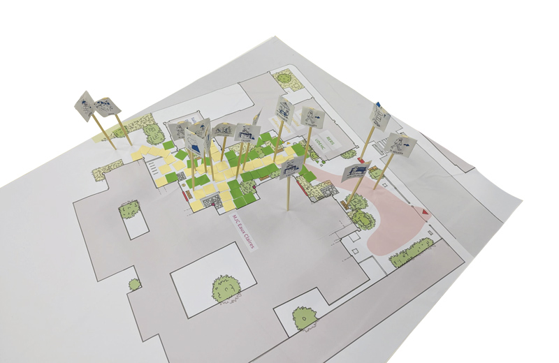 Son premier jalon : Un atelier-maquette organisé le 24 septembre dernier, avec pictogrammes, papiers de couleur, où 20 personnes de tous horizons – animateurs et animatrices de la MJC, familles adhérentes, habitant-es de l’Union de quartier, etc. – sont déjà venues partager et exprimer leurs idées de mobilier et de plantations », explique Cyrielle Chappex, chargée de projet au sein du service Citoyenneté. Pour débitumiser, un prestataire interviendra, laissant une menue parcelle « effritée par petits morceaux